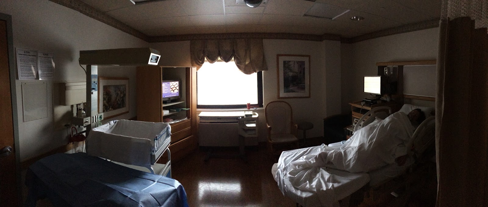 The next day my best friend, Sarah, and her sister came over to visit me in the hospital. They were in NYC with family, so it was perfect timing! David went for a run and decided to run from the hospital to our house (about 9 miles). He spent the day at home with Elizabeth and my parents came to keep me company. Of course I don't have any pics of them at the hospital...oops! That night David came back and spent the night with me again at the hospital.